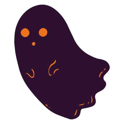 紫×オレンジ色のポップな表情のおばけ02のクラスTシャツデザインパーツ[No.PHW32]
