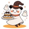 ケーキを振る舞うおばけのクラスTシャツデザインパーツ[No.PHW337]