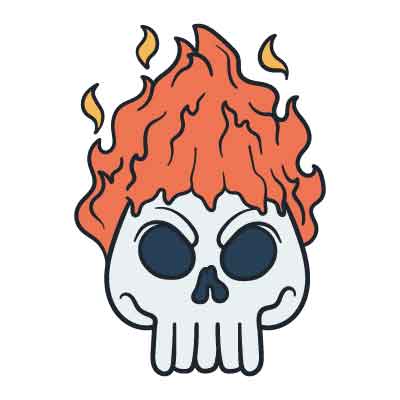 頭から炎が出てるガイコツのクラスTシャツデザインパーツ[No.PHW379]