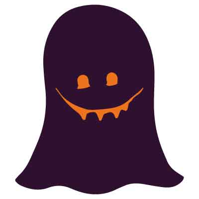 紫×オレンジ色のポップな表情のおばけ08のクラスTシャツデザインパーツ[No.PHW92]