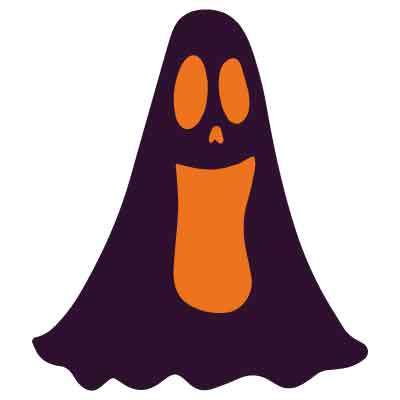 紫×オレンジ色のポップな表情のおばけ09のクラスTシャツデザインパーツ[No.PHW93]