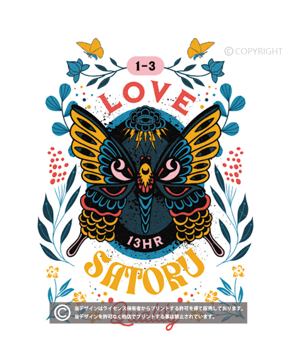 当店の全てのデザインはライセンス保有者からプリントする許可を得て販売しております。掲載デザインを許可なく他店でプリントする事は禁止されています。(無断利用厳禁/AIPR) デザインはプリント商品でのみの提供となり、印刷データの提供は出来かねます。
