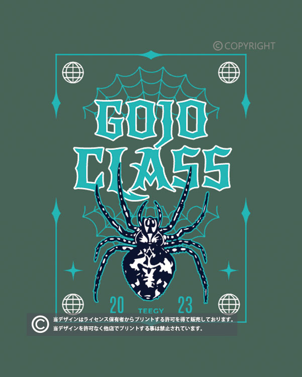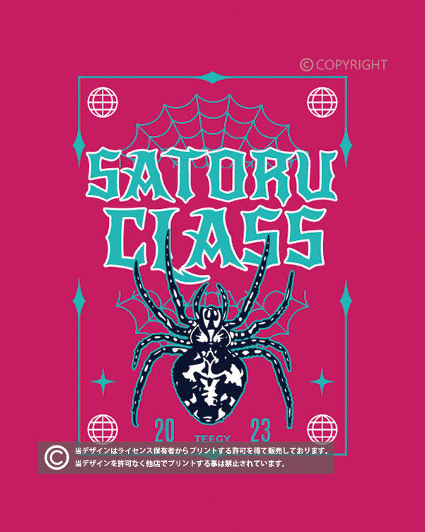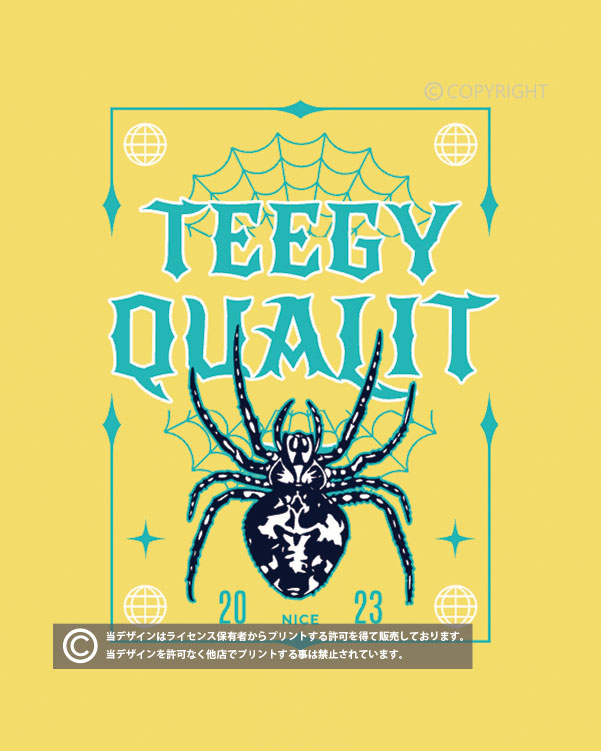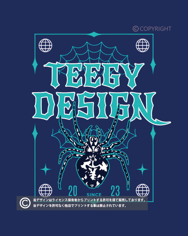 スパイダータロットカード風のデザインがおしゃれなクラスTシャツ向けのデザイン。TEEGY DESIGNの部分を〇〇HRにしたり、色も自由に変更が可能です。