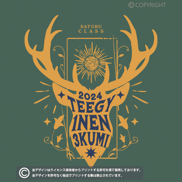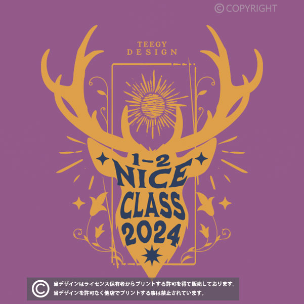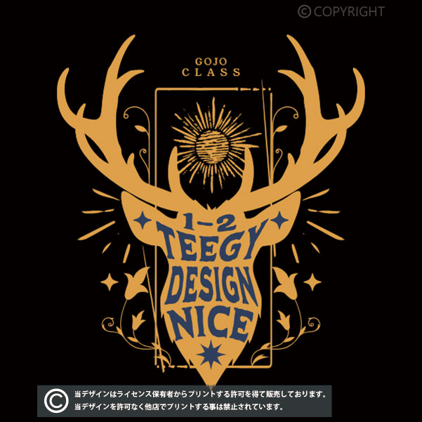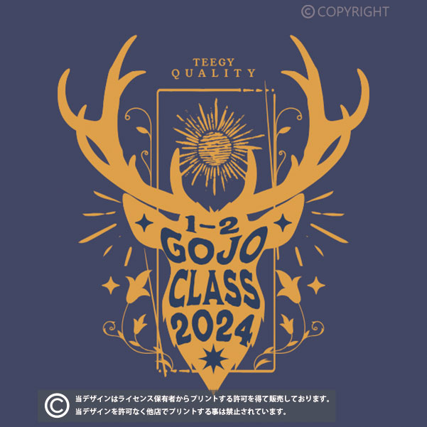 シカのシルエットのデザインがおしゃれなクラスTシャツ向けのデザイン。GOJO CLASSの部分を2024にしたり、1-2の部分を12HRにしたり、色も自由に変更が可能です。