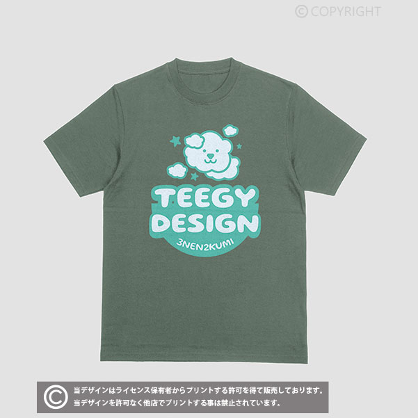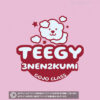 もこもこなデザインが可愛いクラスTシャツ向けのデザイン。TEEGY DESIGNの部分を〇〇CLASSにしたり、3NEN2KUMIの部分を担任の名前にしたり、色も自由に変更が可能です。