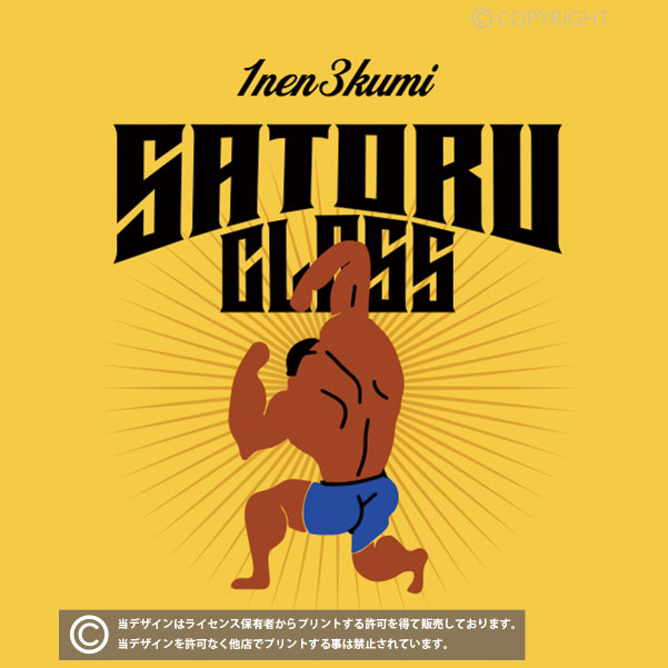 マッチョなボディビルダーのデザインが面白いクラスTシャツ向けのデザイン。1-3の部分を2024にしたり、〇〇CLASSの部分を〇〇HRにしたり、色も自由に変更が可能です。
