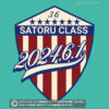 アメリカ国旗風エンブレムのデザインがおしゃれなクラスTシャツ向けのデザイン。2024の部分を3−6にしたり、1NEN6KUMIの部分を〇〇CLASSにしたり、色も自由に変更が可能です。