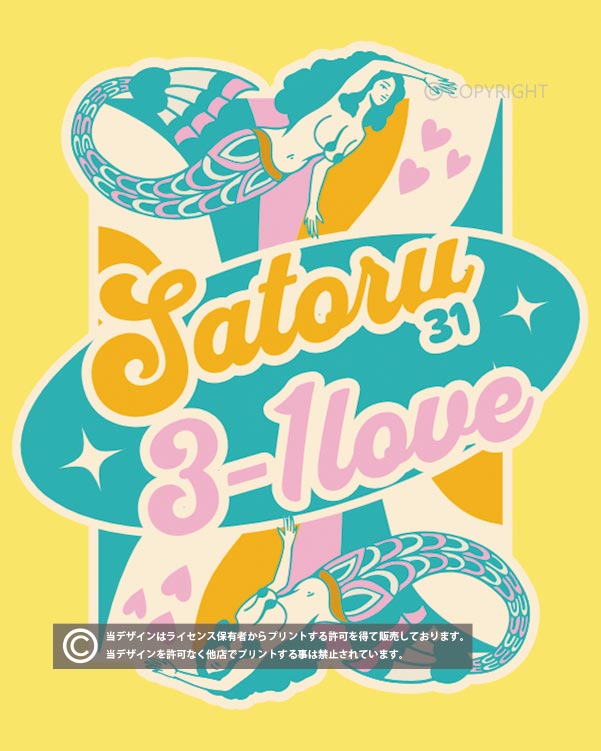 当店の全てのデザインはライセンス保有者からプリントする許可を得て販売しております。掲載デザインを許可なく他店でプリントする事は禁止されています。(無断利用厳禁/AIPR) デザインはプリント商品でのみの提供となり、印刷データの提供は出来かねます。