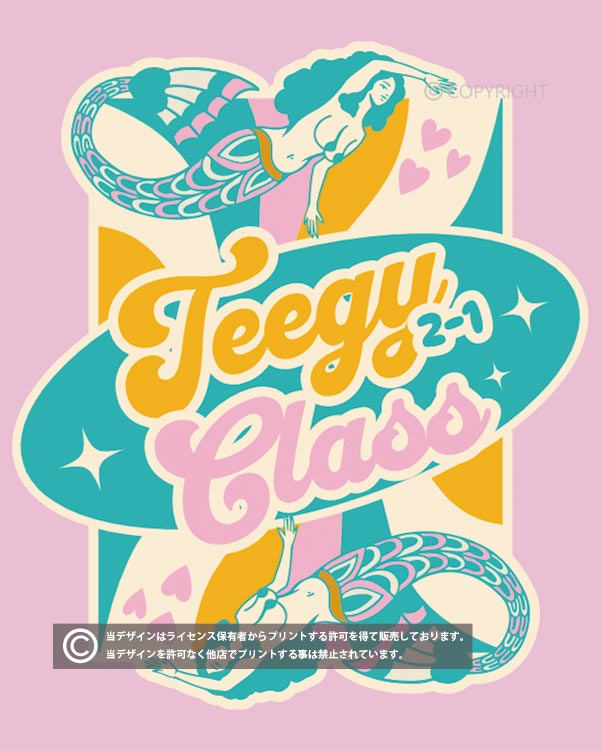 泳ぐマーメイドデザインがかわいいクラスTシャツ向けのデザイン。3-1の部分を担任の名前にしたり、色も自由に変更が可能です。