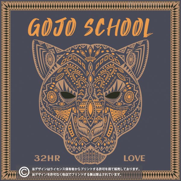 エジプト壁画風猫のデザインがかっこいいクラスTシャツ向けのデザイン。GOJO'S CLASSの部分をクラス名にしたり、色も自由に変更が可能です。