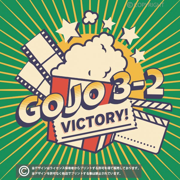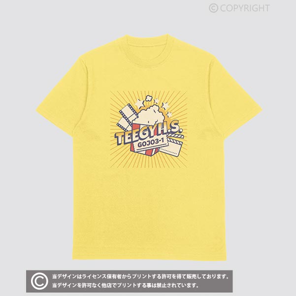 弾けるポップコーンのデザインが面白いクラスTシャツ向けのデザイン。GOJO3-1の部分をVICTORY!にしたり、TEEGYの部分を担任の名前にしたり、色も自由に変更が可能です。