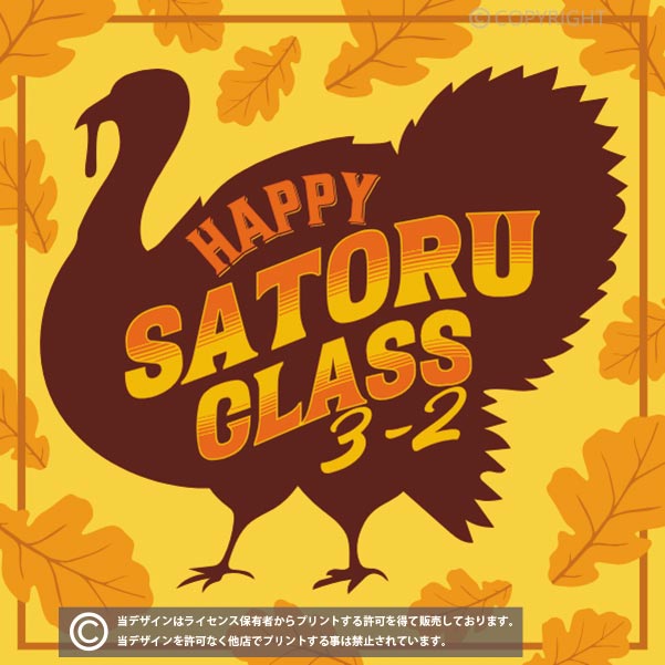 七面鳥のシルエットデザインが面白いクラスTシャツ向けのデザイン。SATORU CLASSの部分を32HRにしたり、色も自由に変更が可能です。