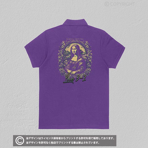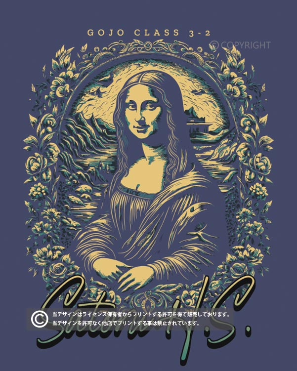 モナリザのデザインが目を惹くクラスTシャツ向けのデザイン。2NEN3KUMIの部分をSCHOOL FESTIVALにしたり、色も自由に変更が可能です。