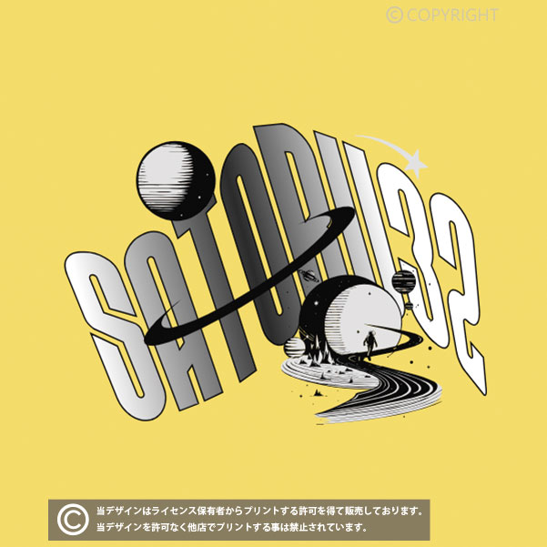 白黒ロゴと惑星のデザインが目立つクラスTシャツ向けのデザイン。SATORU32の部分を〇〇CLASS 〇〇HRにしたり、色も自由に変更が可能です。