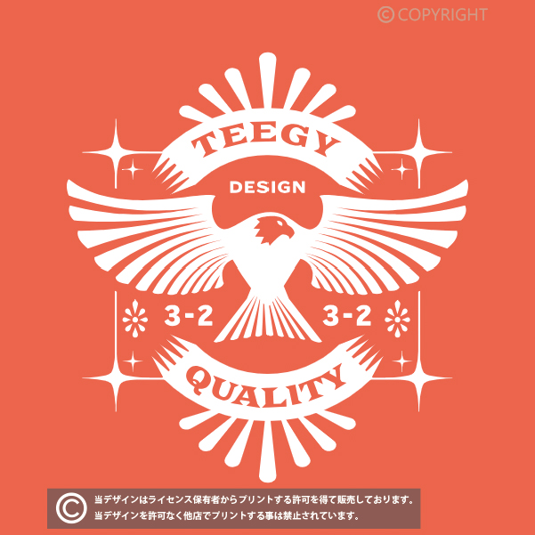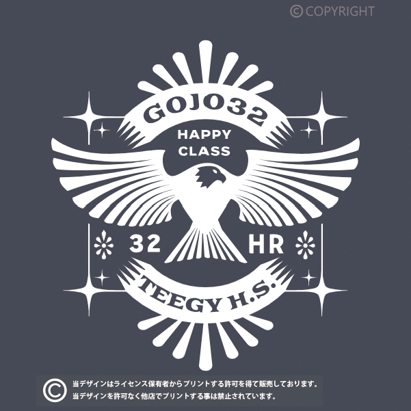 当店の全てのデザインはライセンス保有者からプリントする許可を得て販売しております。掲載デザインを許可なく他店でプリントする事は禁止されています。(無断利用厳禁/AIPR) デザインはプリント商品でのみの提供となり、印刷データの提供は出来かねます。