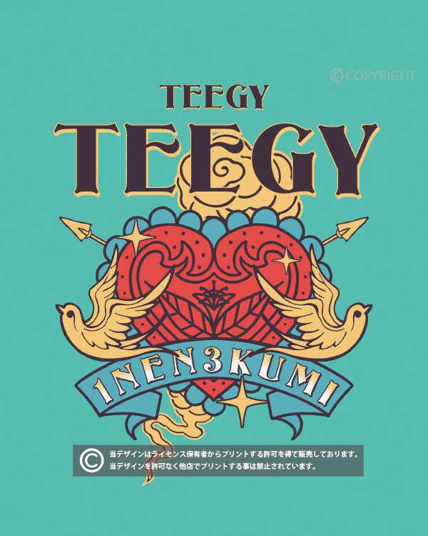 当店の全てのデザインはライセンス保有者からプリントする許可を得て販売しております。掲載デザインを許可なく他店でプリントする事は禁止されています。(無断利用厳禁/AIPR) デザインはプリント商品でのみの提供となり、印刷データの提供は出来かねます。