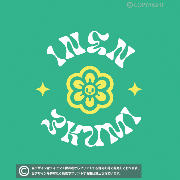 当店の全てのデザインはライセンス保有者からプリントする許可を得て販売しております。掲載デザインを許可なく他店でプリントする事は禁止されています。(無断利用厳禁/AIPR) デザインはプリント商品でのみの提供となり、印刷データの提供は出来かねます。