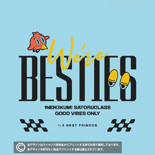 当店の全てのデザインはライセンス保有者からプリントする許可を得て販売しております。掲載デザインを許可なく他店でプリントする事は禁止されています。(無断利用厳禁/AIPR) デザインはプリント商品でのみの提供となり、印刷データの提供は出来かねます。