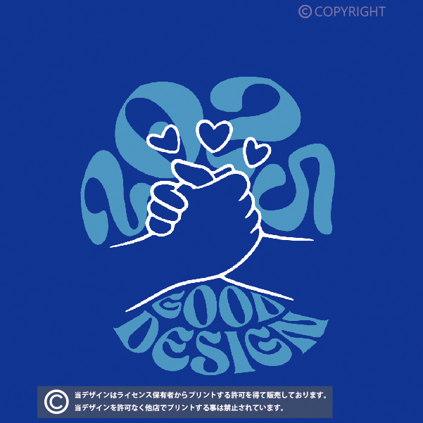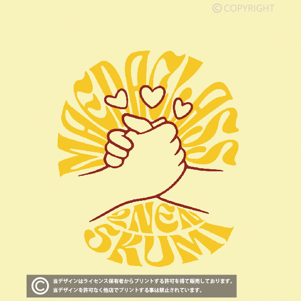 当店の全てのデザインはライセンス保有者からプリントする許可を得て販売しております。掲載デザインを許可なく他店でプリントする事は禁止されています。(無断利用厳禁/AIPR) デザインはプリント商品でのみの提供となり、印刷データの提供は出来かねます。