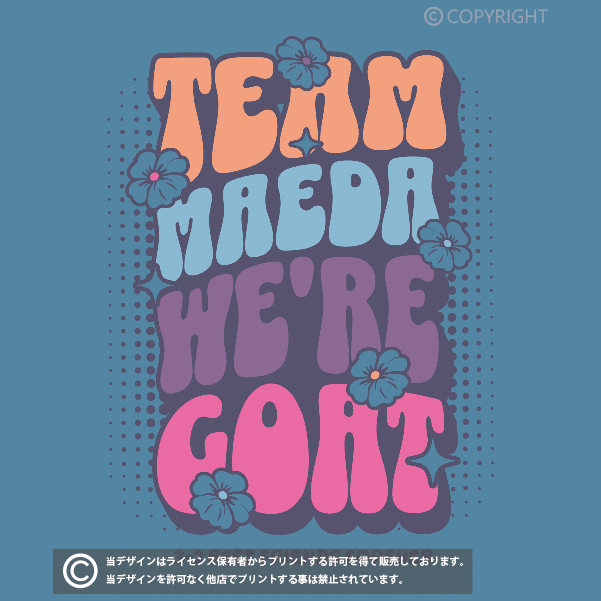 当店の全てのデザインはライセンス保有者からプリントする許可を得て販売しております。掲載デザインを許可なく他店でプリントする事は禁止されています。(無断利用厳禁/AIPR) デザインはプリント商品でのみの提供となり、印刷データの提供は出来かねます。
