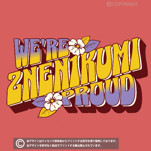 当店の全てのデザインはライセンス保有者からプリントする許可を得て販売しております。掲載デザインを許可なく他店でプリントする事は禁止されています。(無断利用厳禁/AIPR) デザインはプリント商品でのみの提供となり、印刷データの提供は出来かねます。