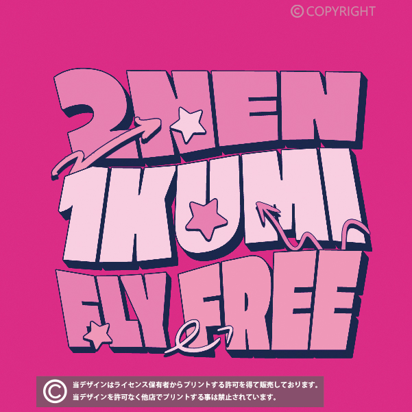 当店の全てのデザインはライセンス保有者からプリントする許可を得て販売しております。掲載デザインを許可なく他店でプリントする事は禁止されています。(無断利用厳禁/AIPR) デザインはプリント商品でのみの提供となり、印刷データの提供は出来かねます。