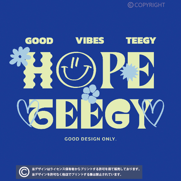 当店の全てのデザインはライセンス保有者からプリントする許可を得て販売しております。掲載デザインを許可なく他店でプリントする事は禁止されています。(無断利用厳禁/AIPR) デザインはプリント商品でのみの提供となり、印刷データの提供は出来かねます。