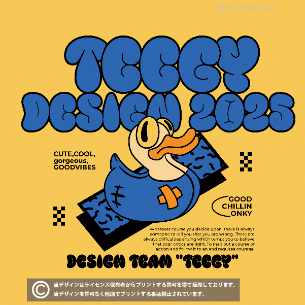 当店の全てのデザインはライセンス保有者からプリントする許可を得て販売しております。掲載デザインを許可なく他店でプリントする事は禁止されています。(無断利用厳禁/AIPR) デザインはプリント商品でのみの提供となり、印刷データの提供は出来かねます。