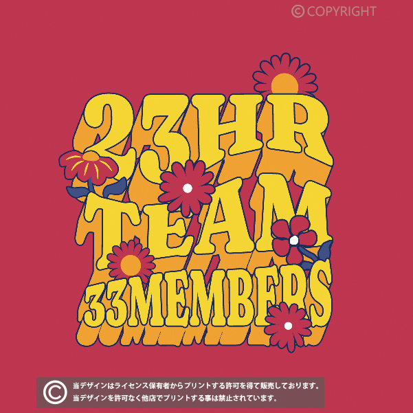当店の全てのデザインはライセンス保有者からプリントする許可を得て販売しております。掲載デザインを許可なく他店でプリントする事は禁止されています。(無断利用厳禁/AIPR) デザインはプリント商品でのみの提供となり、印刷データの提供は出来かねます。