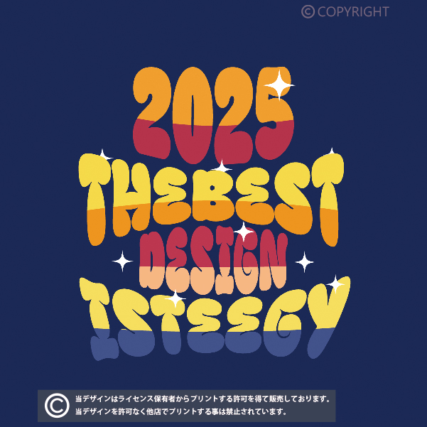 当店の全てのデザインはライセンス保有者からプリントする許可を得て販売しております。掲載デザインを許可なく他店でプリントする事は禁止されています。(無断利用厳禁/AIPR) デザインはプリント商品でのみの提供となり、印刷データの提供は出来かねます。