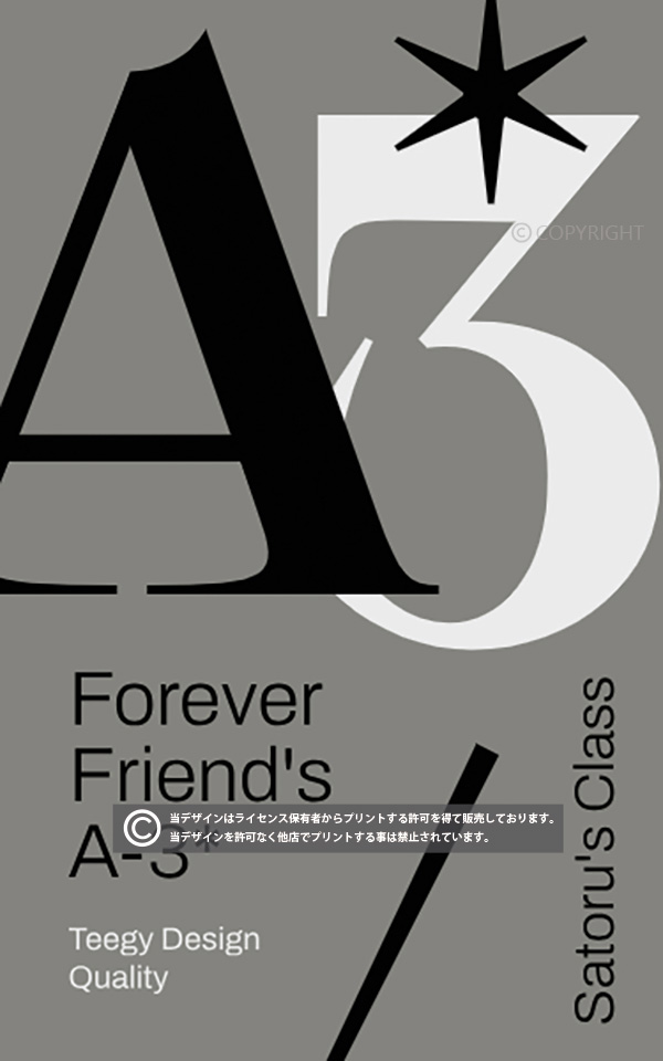 当店の全てのデザインはライセンス保有者からプリントする許可を得て販売しております。掲載デザインを許可なく他店でプリントする事は禁止されています。(無断利用厳禁/AIPR) デザインはプリント商品でのみの提供となり、印刷データの提供は出来かねます。