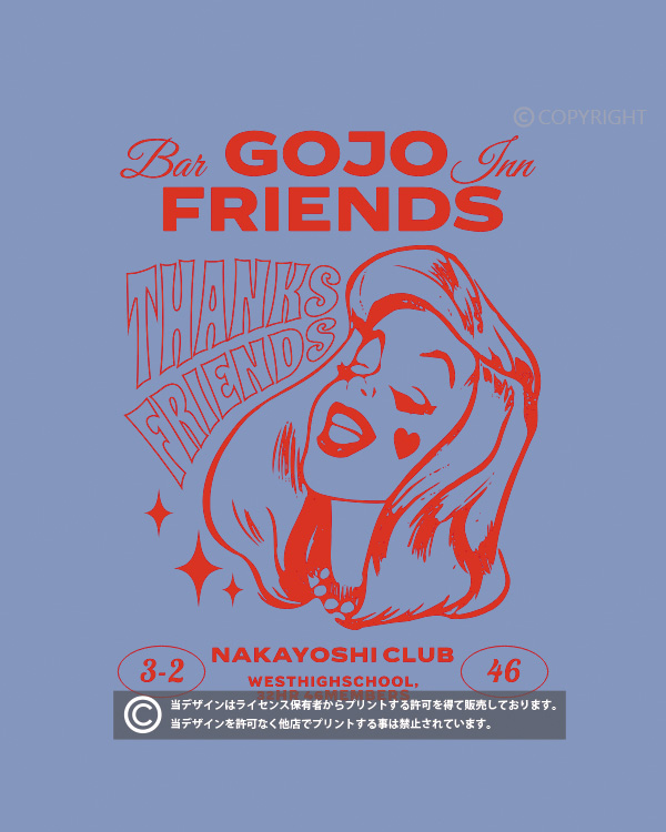 当店の全てのデザインはライセンス保有者からプリントする許可を得て販売しております。掲載デザインを許可なく他店でプリントする事は禁止されています。(無断利用厳禁/AIPR) デザインはプリント商品でのみの提供となり、印刷データの提供は出来かねます。